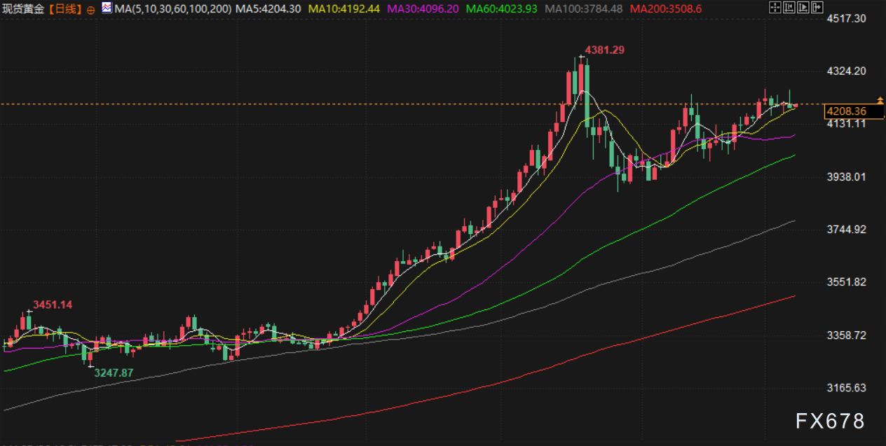 金价上周五上涨,主要受市场对美联储降息的预期增强推动,现货黄金周内基本波动于4200美元/盎司附近,同时,白银价格创下历史新高。