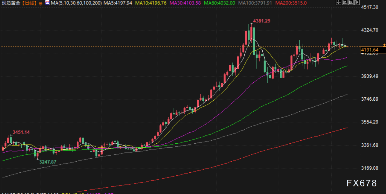 金市金价周一小幅下跌,因投资者在美联储货币政策会议前保持谨慎态度,等待有关未来利率路径的明确信号。现货黄金最终收跌0.2%,报每盎司4189.49美元。